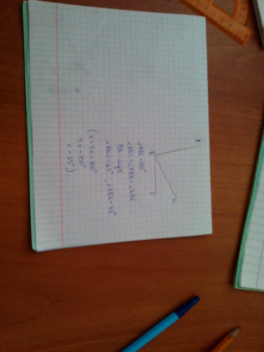 Постройте угол 100 градусов из вершины угла проведите луч так чтобы один из сделанных углов был в 3 раза больше другого определите величины получившихся углов