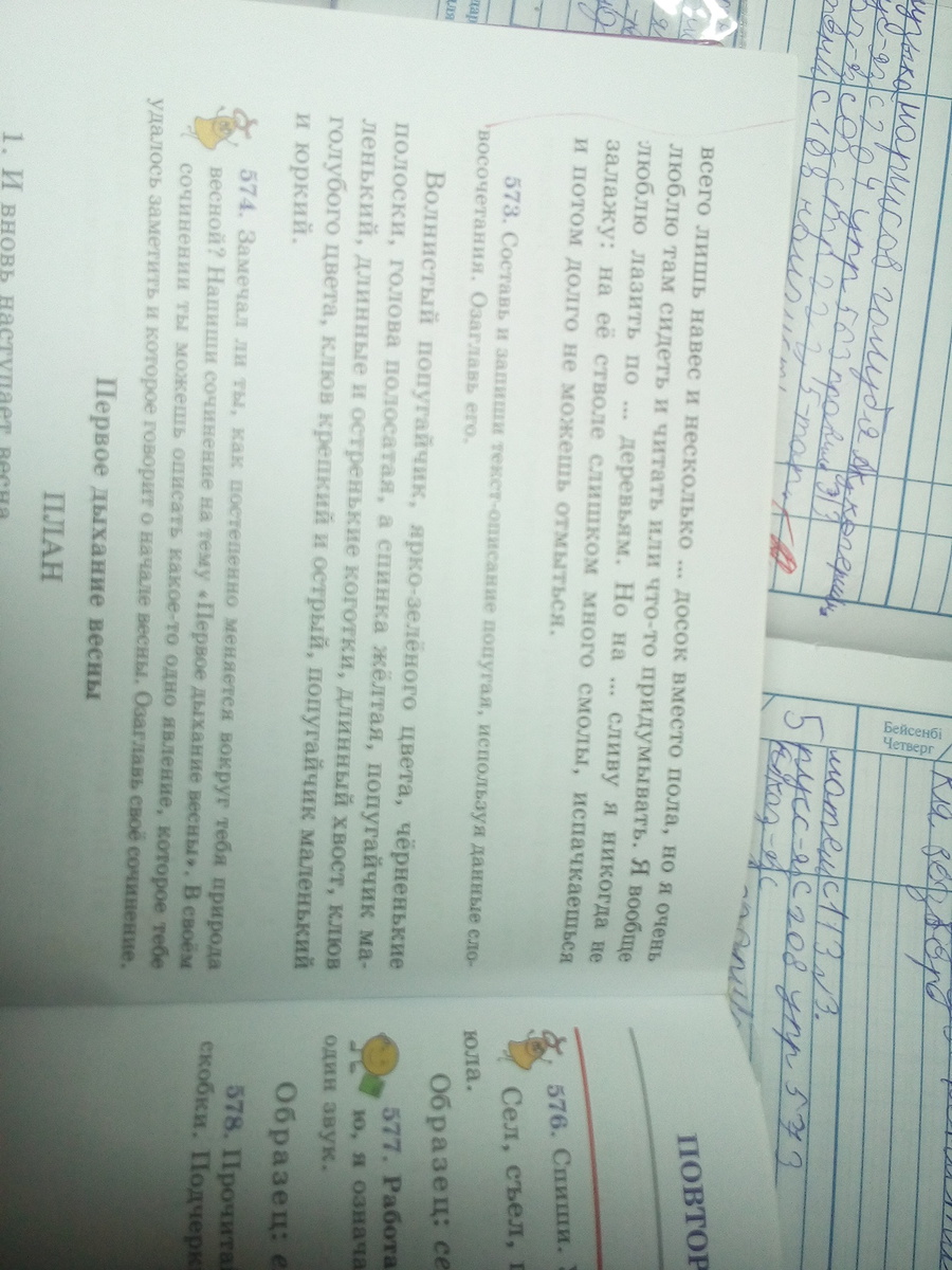 у меня дома живёт волнистый попугай. Он ярко зелёного цвета,голова у него полосатая, ещё у него на спинке у него чёрные полоски а сама спинка жёлтая. Попугайчик маленький. У него есть длинные и острые когти и длинный хвост. Клюв у него синий крепкий и острый. Попугайчик маленький и юркий.