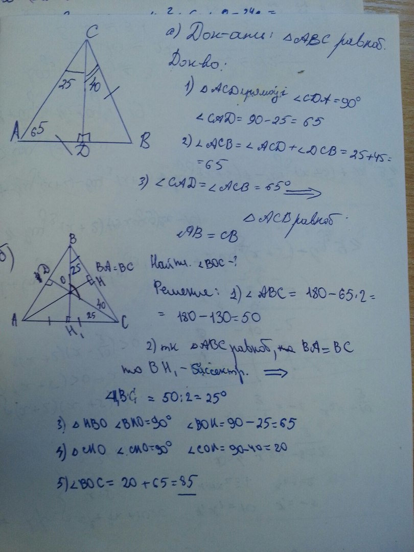 б) Высоты данного треугольника пересекаются в точке О. Найдите угол BOC.