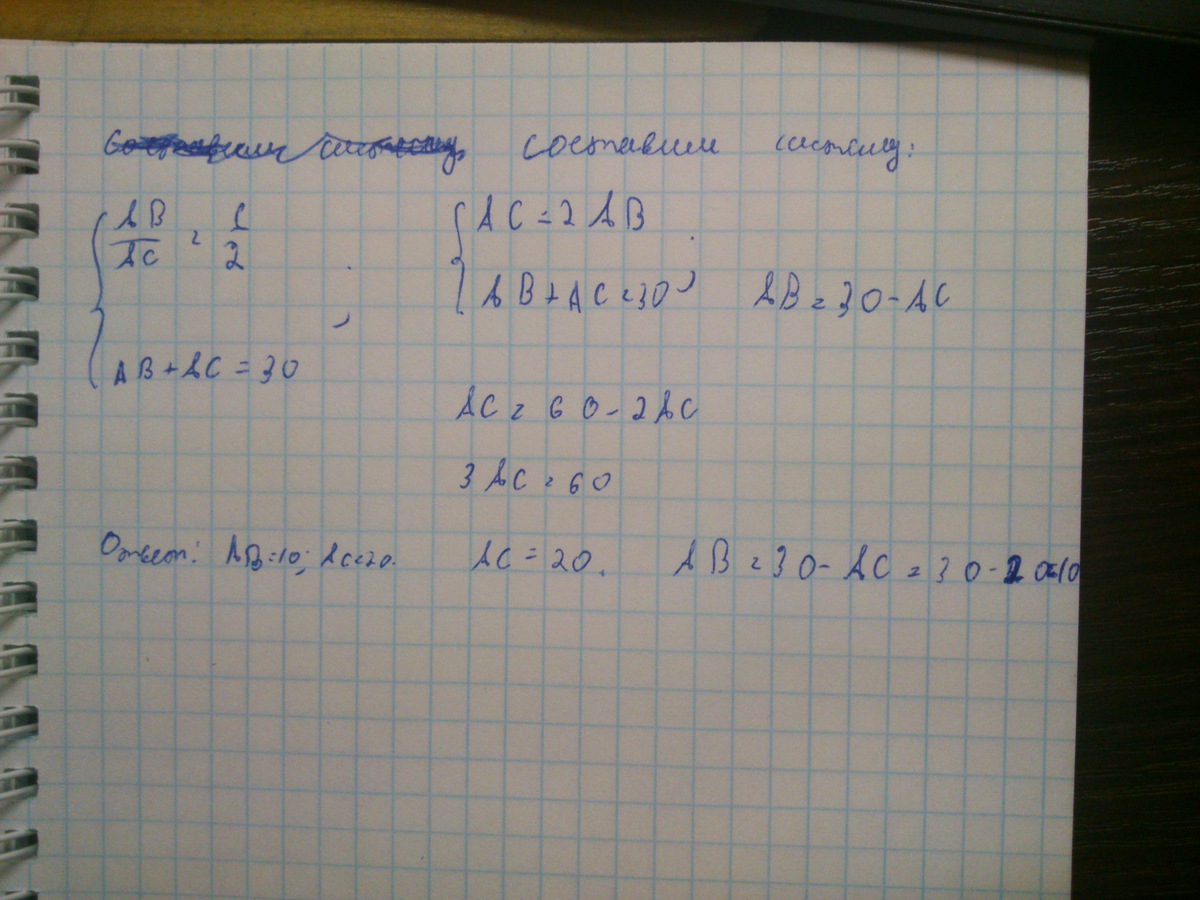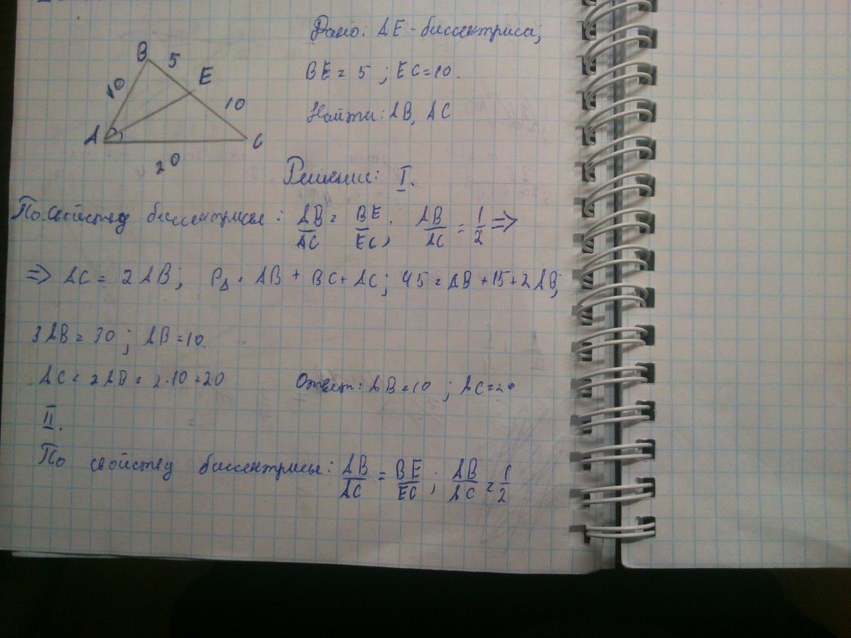Биссектриса треугольника, периметр которого 45 см, делит его сторону на отрезки, равные 5см и 10см. вычислите длины сторон треугольника