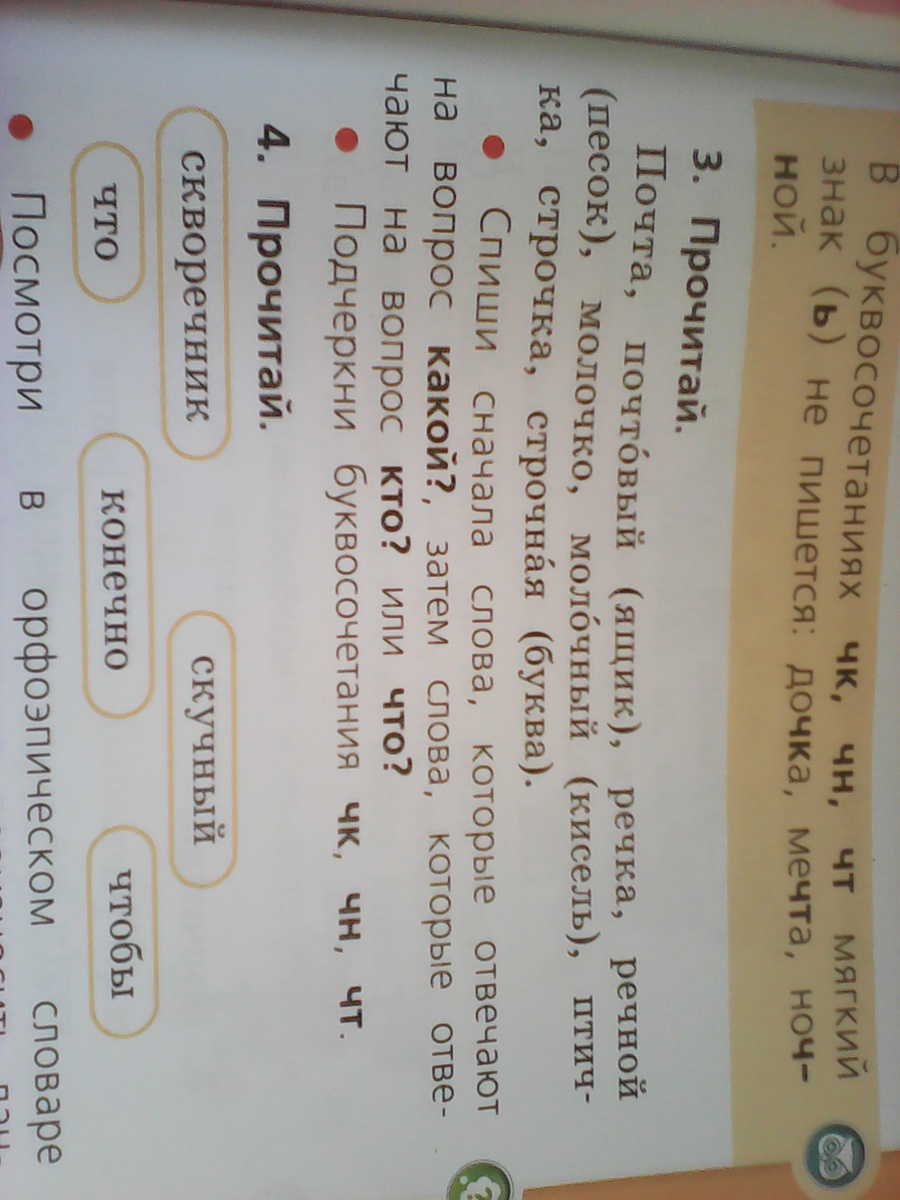 а на вопросы кто и что остальные слова почта,ящик,речка,песок,молочко,кисель,птичка,строчка,буква.
