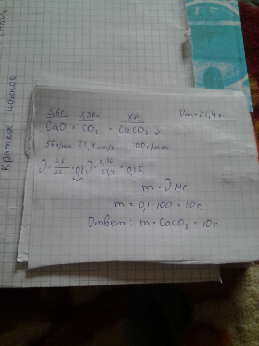 Над порошком оксида кальция массой 5,6 г пропускали углекислый газ. Объём вступившего в реакцию газа 3,36 л. Вычислите массу (г) образовавшегося карбоната кальция.