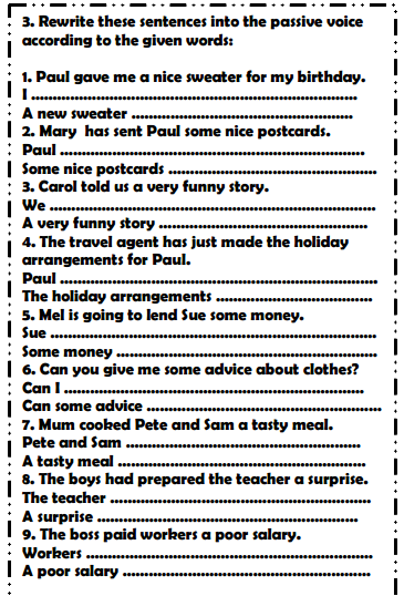 1 A new sweater was given by Paul for my birthday. I was given a nice sweater for by birthday by Paul.