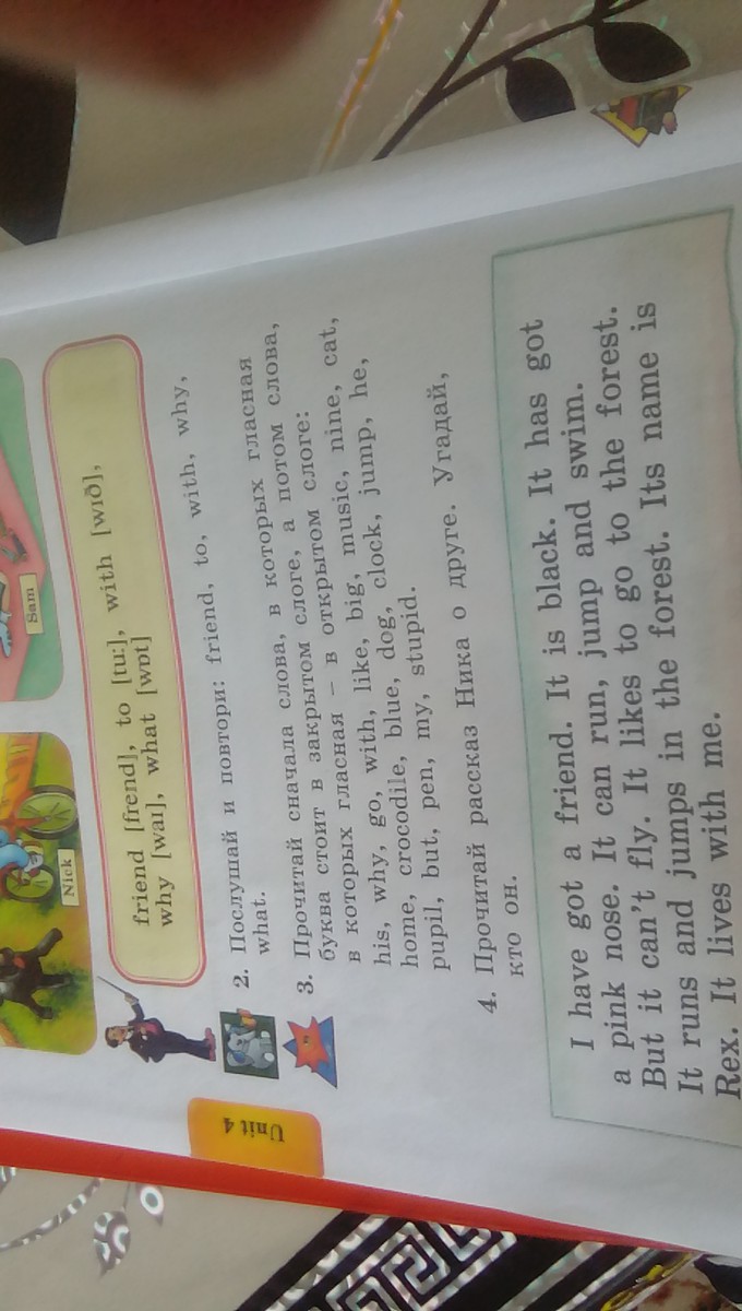 в закрытом слоге→his,with,like,big,music,nine,cat,home,crocodile,dog, clock,jump,pupil,but,pen,stupid.