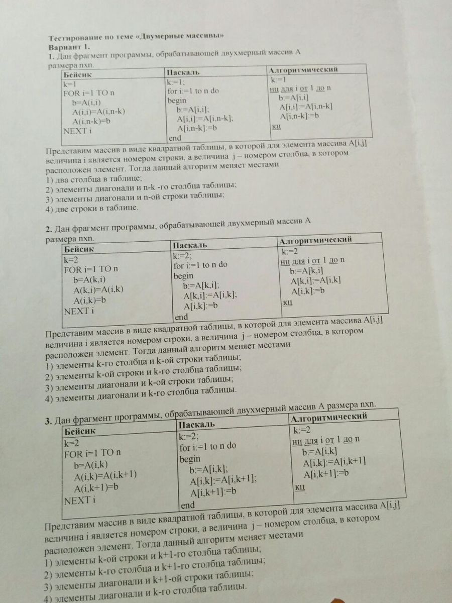 Ответ 3. А так потому, что первая цифра в матричных координатах - строка,и в буфер b забирается число, у которого первая цифра - строка, а в конце уже столбец
