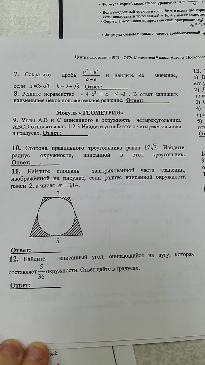 из этого находим площадь круга S=pr2=4p теперь находим площадь трапеции S=L×h=4×4=16