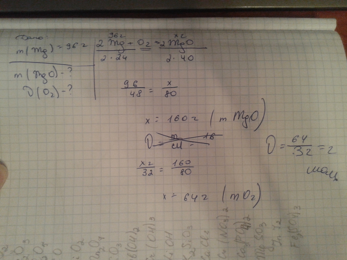 Какая масса оксида магния получится при взаимодействие 96 г магния с кислородом? Какое количество вещества кислорода необходимо для реакции???? ОЧЕНЬ НАДО, ПОМОГИТЕ ПОЖАЛУЙСТА!!! УМОЛЯЮ!