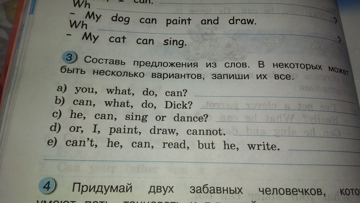составь предложение из слов.В некоторых может быть несколько вариантов,запиши их все