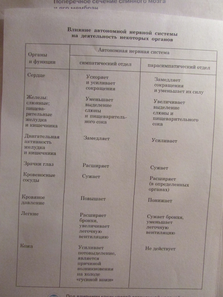 Если нужно, я могу скинуть одну полезную табличку, там написано, как симпатическая и парасимпатическая системы влияют на отдельные органы и системы органов.