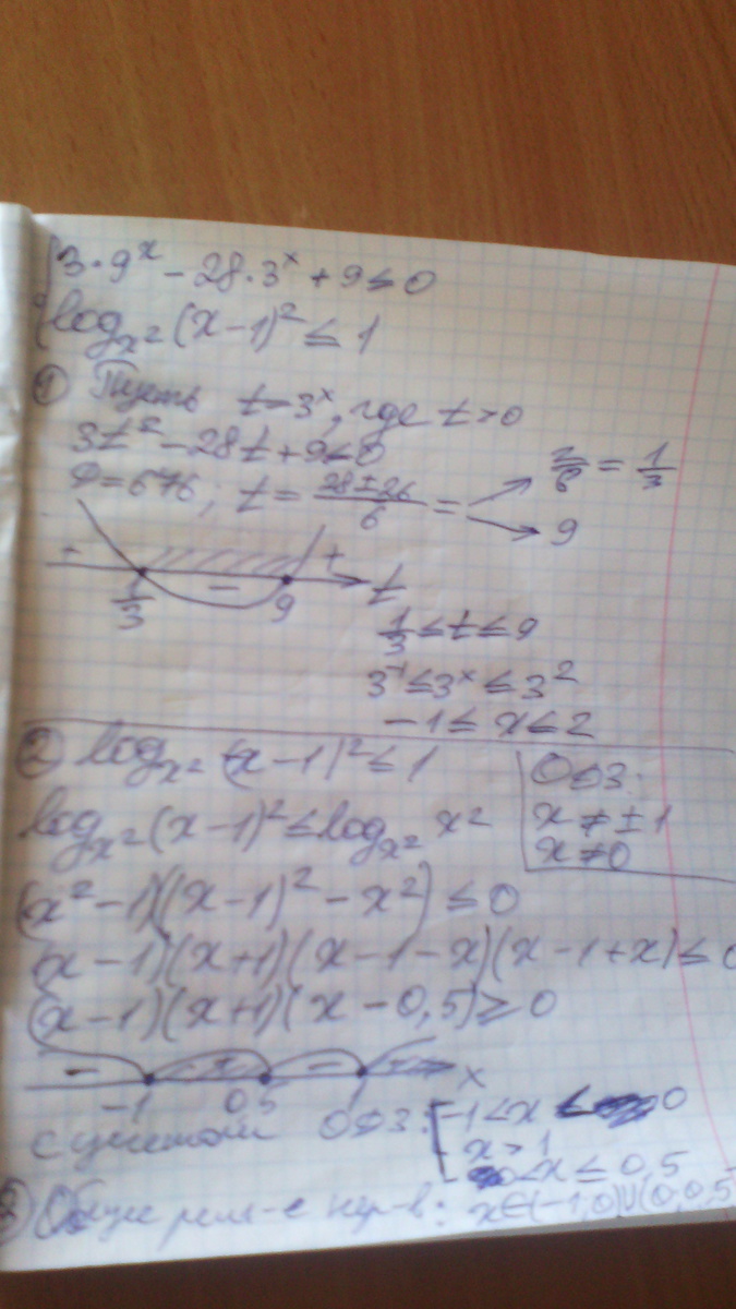3) Общее решение неравенств: x€(-1;0)U(0;0,5]U(1;2] это и есть ответ.