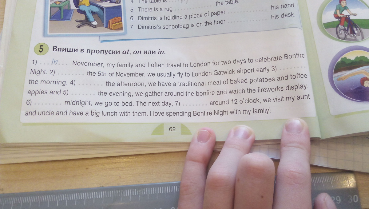 2) on 3) in 4) in 5) in 6) at 7) at
