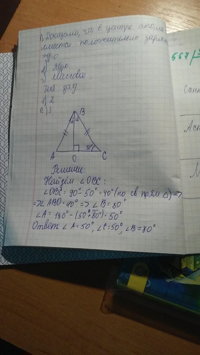 Треугольник АВС равнобедренный с основанием АС,угол С=50° ,ВО -высота.Определите углы треугольника АВО