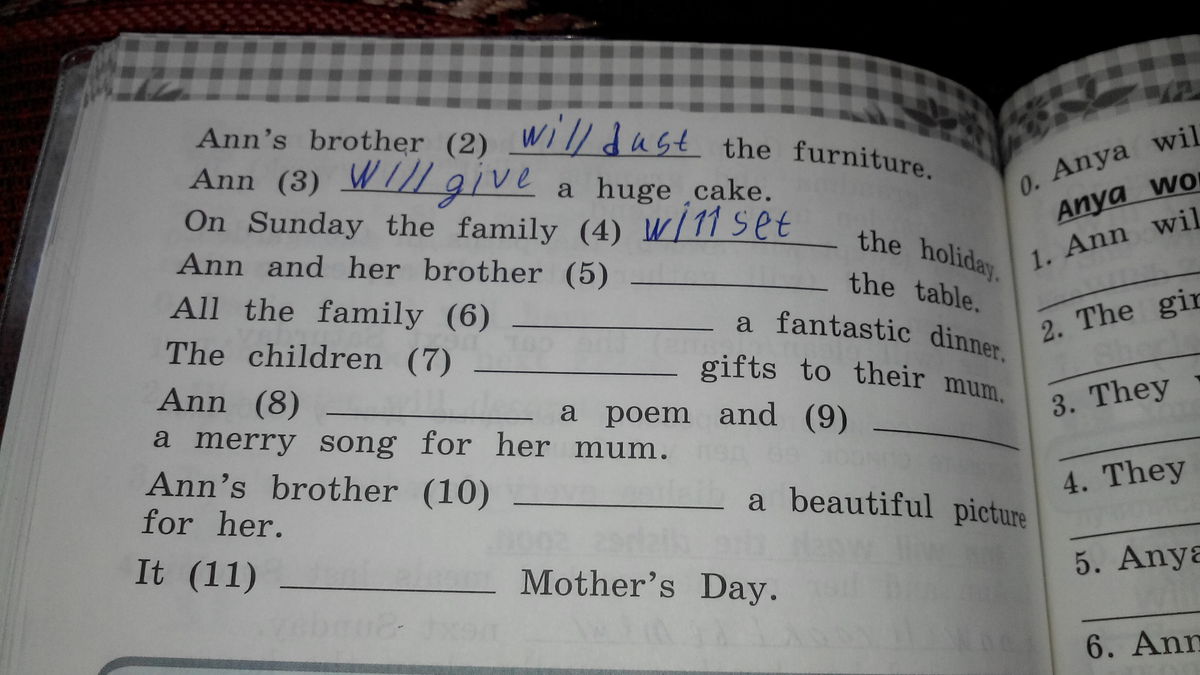 5)will sit next to 6)will have 10)will drow 11)will by помог как смог