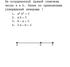 На координатной прямой отмечены числа a и b. Какие из приведенных утверждений неверные?
