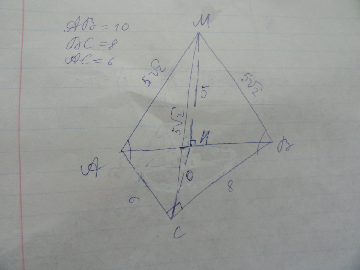 пирамида АВСМ, АВ=10, ВС=8, АС=6