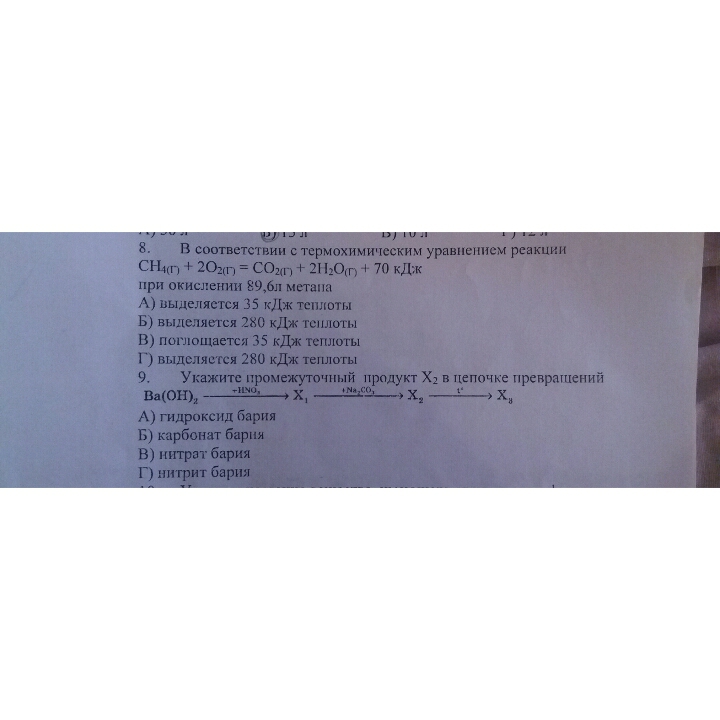 8. В соответствии с термохимическим уравнением реакции при окислении 89, 6 л метана выделяется