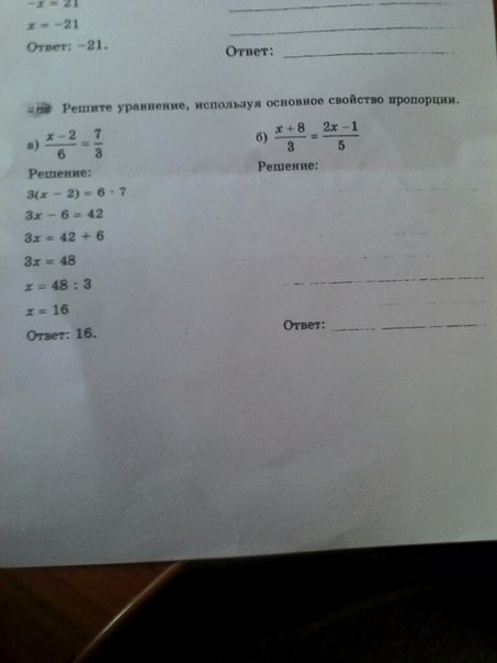 б) Первым делом - избавляемся от дроби. Для этого, как в примере, перемножаем накрест.