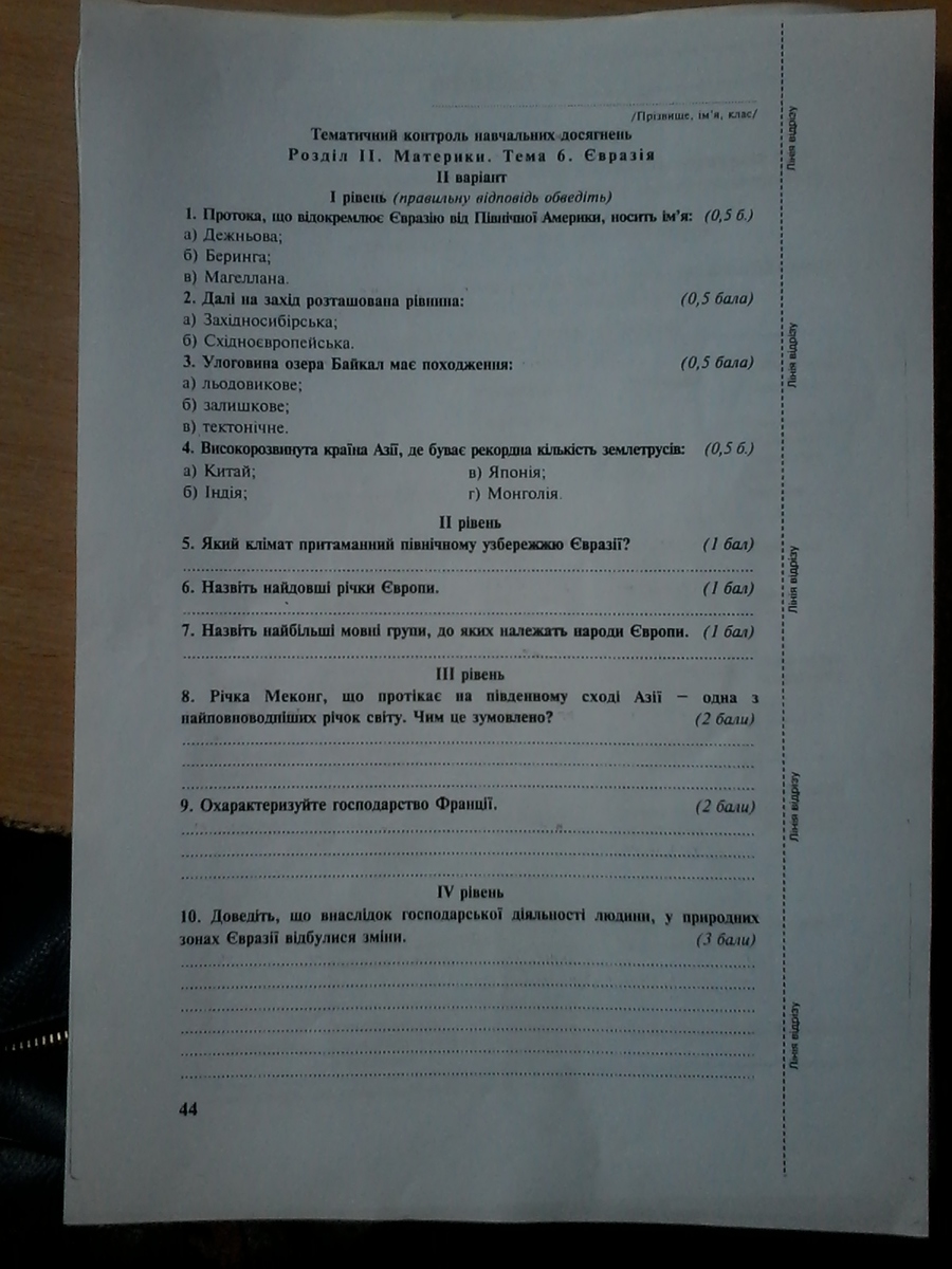 1 а). 2) б. 3)в. 4)в. 5) в п¡вн¡чн¡й частин¡ эвраз¡¡ характерной кл¡мат арктичного типу,духе холодна зима ¡ не даже тепле л¡то 6) 1 м¡сце Волга 2 м¡сце Дунай 3 м¡сце Дн¡про 4 м¡сце Дон 5 м¡сце Печора якщо треба довжини тод¡ ( 3530 км,2850,2201,1870,1809. 7) 1 Англ. мова 2 ) Французька мова 3) ¡спанська мова