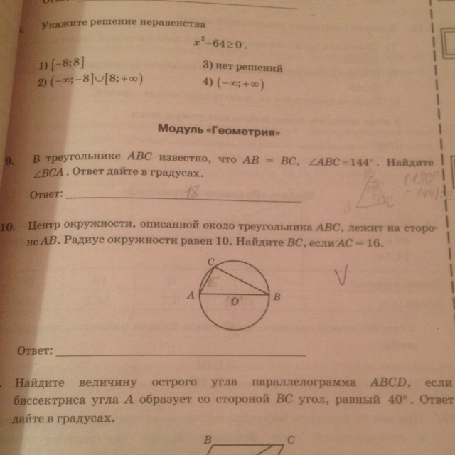 если сторона является диаметром то треугольник прямоугольный