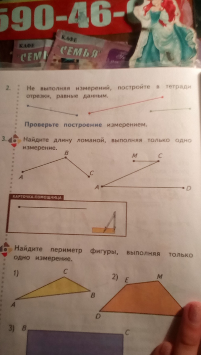 Отметим циркулем отрезок АВ и ВС на луче ОД так чтобы АВ и ВС отрезки лежали друг за другом в одной линии и измеряем один раз линейкой общее расстояние: например АВ+ВС=АС