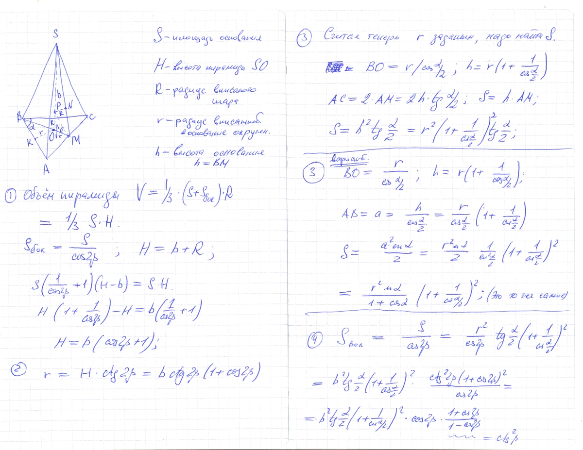 Понимаете, после того, как найдены основание и высоты, спокойно можно обойтись без проекции площадей. Но, во-первых я не вижу запрета на использование той формулы, что я использовал, а во вторых, мне стало просто лень, ворочать этими громоздкими формулами. И апофема, и площади граней уже легко вычисляются. А по поводу той пресловутой формулы http://www.uznateshe.ru/piramidyi-v-kotoryih-dvugrannyie-uglyi-pri-osnovanii-ravnyi/