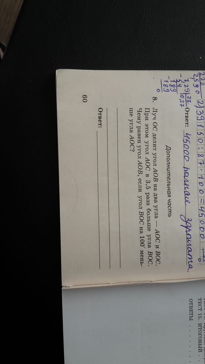 ПОМОГИТЕ!!! СРОЧНО! луч OC делит угол AOB на два угла. При этом угол AOC в 3,5 раза больше угла BOC.Чему равен угол AOB, если угол BOC на 100° меньше угла AOC?