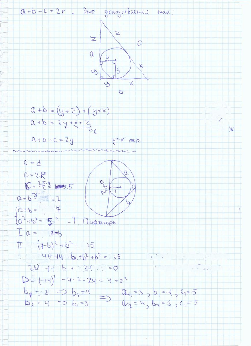 Радиус окружности, описанной около прямоугольного треугольника ABC с прямым углом C равен 2,5. Радиус окружности, вписанной в этот треугольник, равен 1. Найдите стороны треугольника.