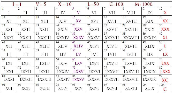 Если ещё будут проблемы с римскими цифрами вот табличка: