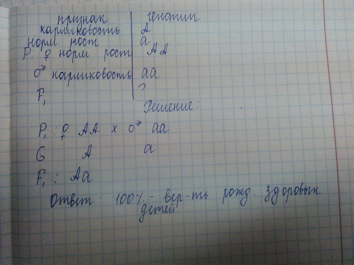 У человека ахондроплазия (карликовость за счёт укорочения скелета конечностей) детерминирована доминантным аутосомным геном. Нормальная женщина вышла замуж за мужчину с ахондроплазией . Какова вероятность рождения здоровых детей в данной семье?