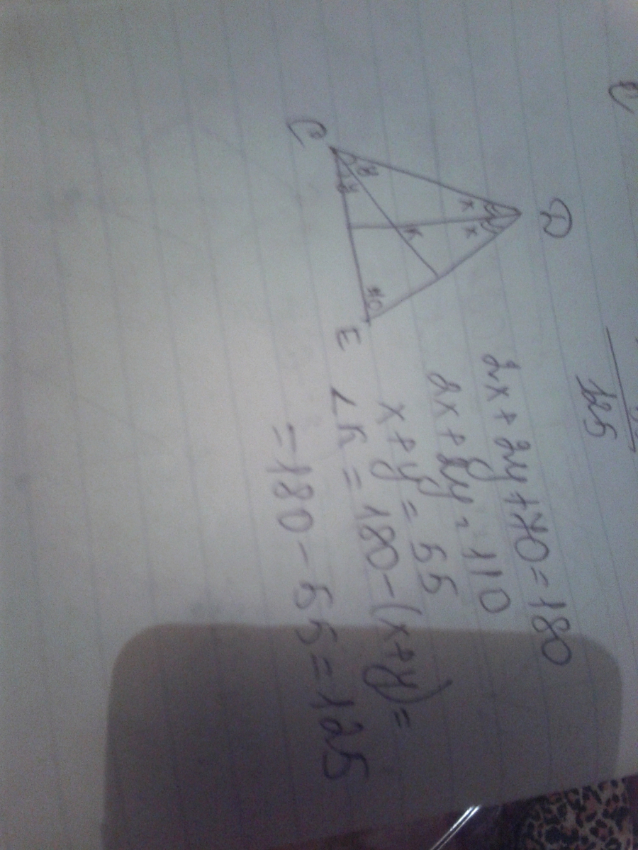 Так как сумма внутренних углов равен 180° нашла чему равна сумма x+y , а потом из 180 отняла эту сумму.если не понятно напиши