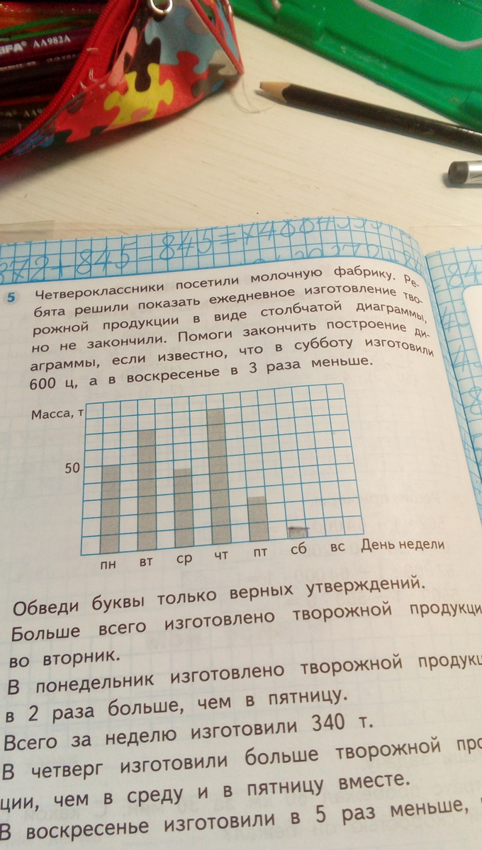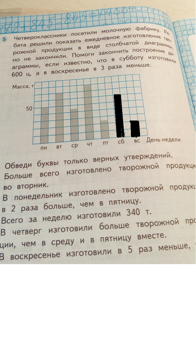 Четвероклассники посетили молочную фабрику ребята решили показать ежедневно изготовление творожной продукции виде столбчатой диаграммы незаконченных помоги закончить построения диаграммы если известно что в субботу изготовили 607 ц., а в воскресенье 3 раза меньше.