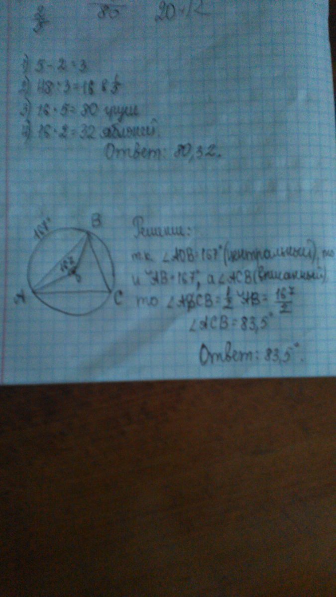 треугольник ABC вписан в окружность с центром в точке 0 Найдите угол АСВ если угол АОВ равен 167 градусов