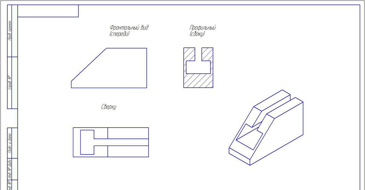Начертите пожалуйста 3 вида (главный,слева,сверху) и изометрию. Главный вид с разрезом.