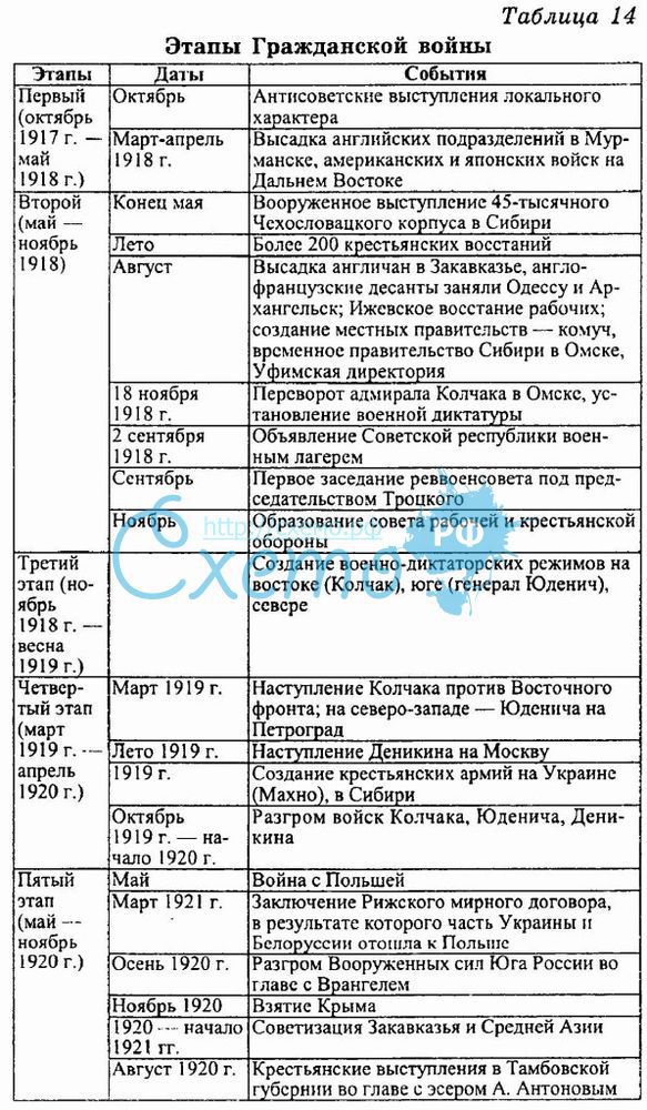 Таблица степень реализации факторов от которых зависела победа красных и белых в Гражданской войне