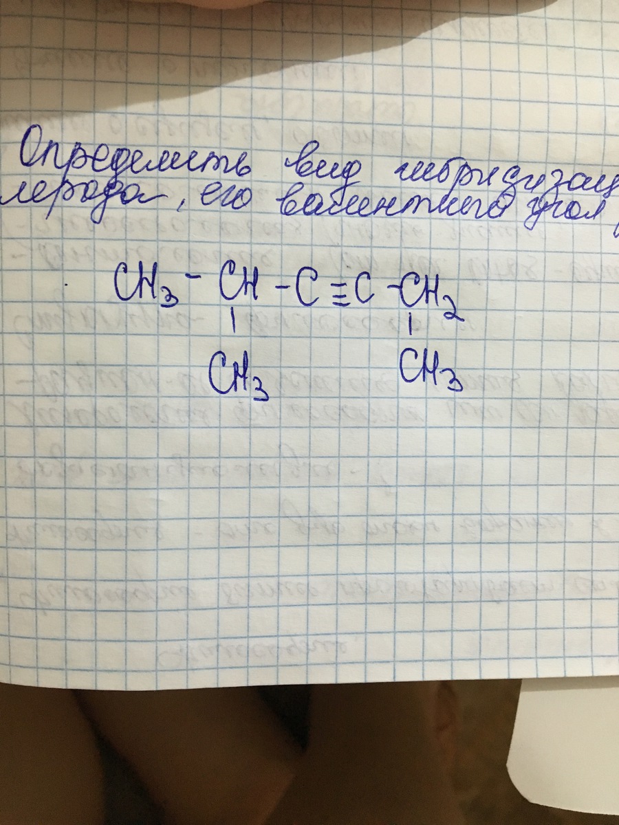 Определить вид гибридизации атомов углерода, его валентный угол для соединения (фото), помогите пожалуйста