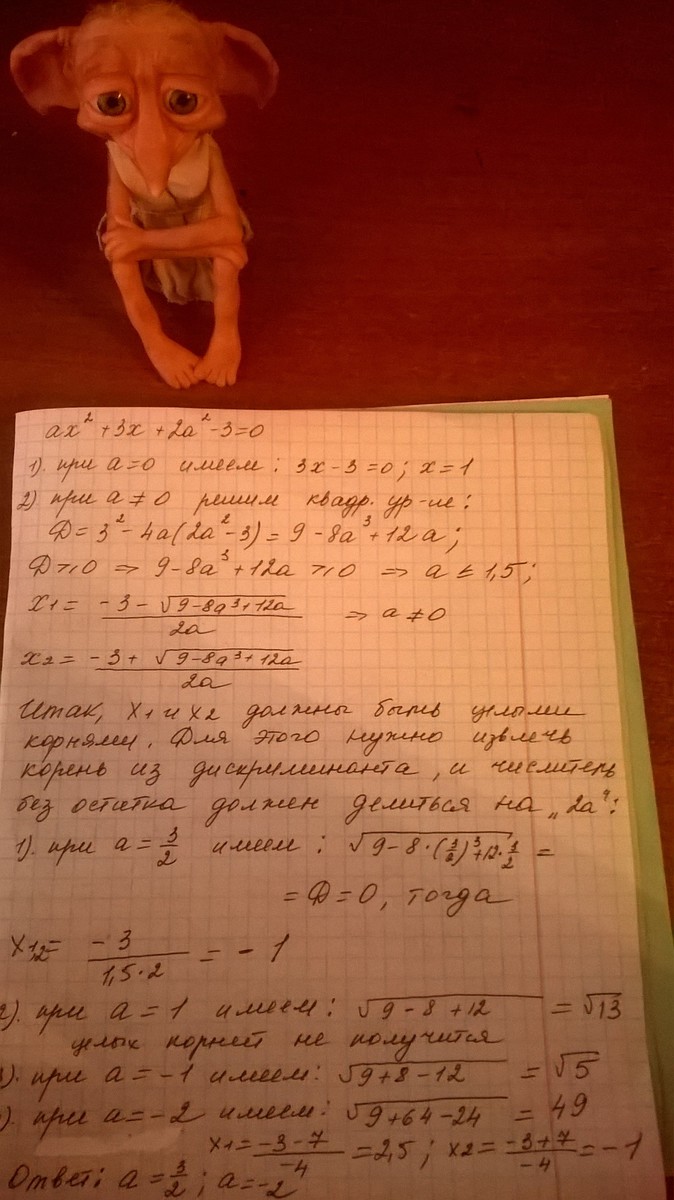 определить для каких значении параметры а уравнение a x^2+3x+2a^2-3=0 имеет только целые корни .