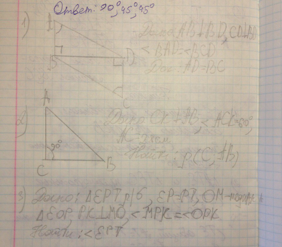 1) АB параллельна BC, ВД секущая, угол ADB равен углу dbc они накрест лежащие, значит угол A B C равен углу адс , Значит четырехугольник ABCD параллелограмм в параллелограмме противоположные стороны равны и параллельны