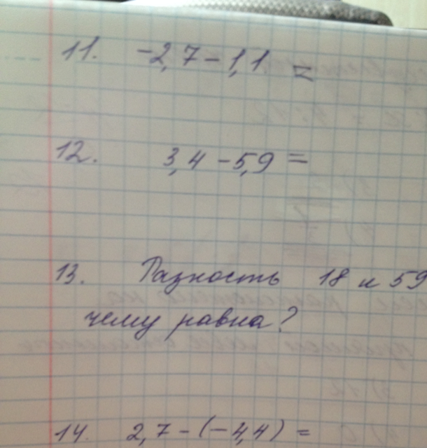 11. -3,8 12. -2,5. 13. 41 14. 7,1