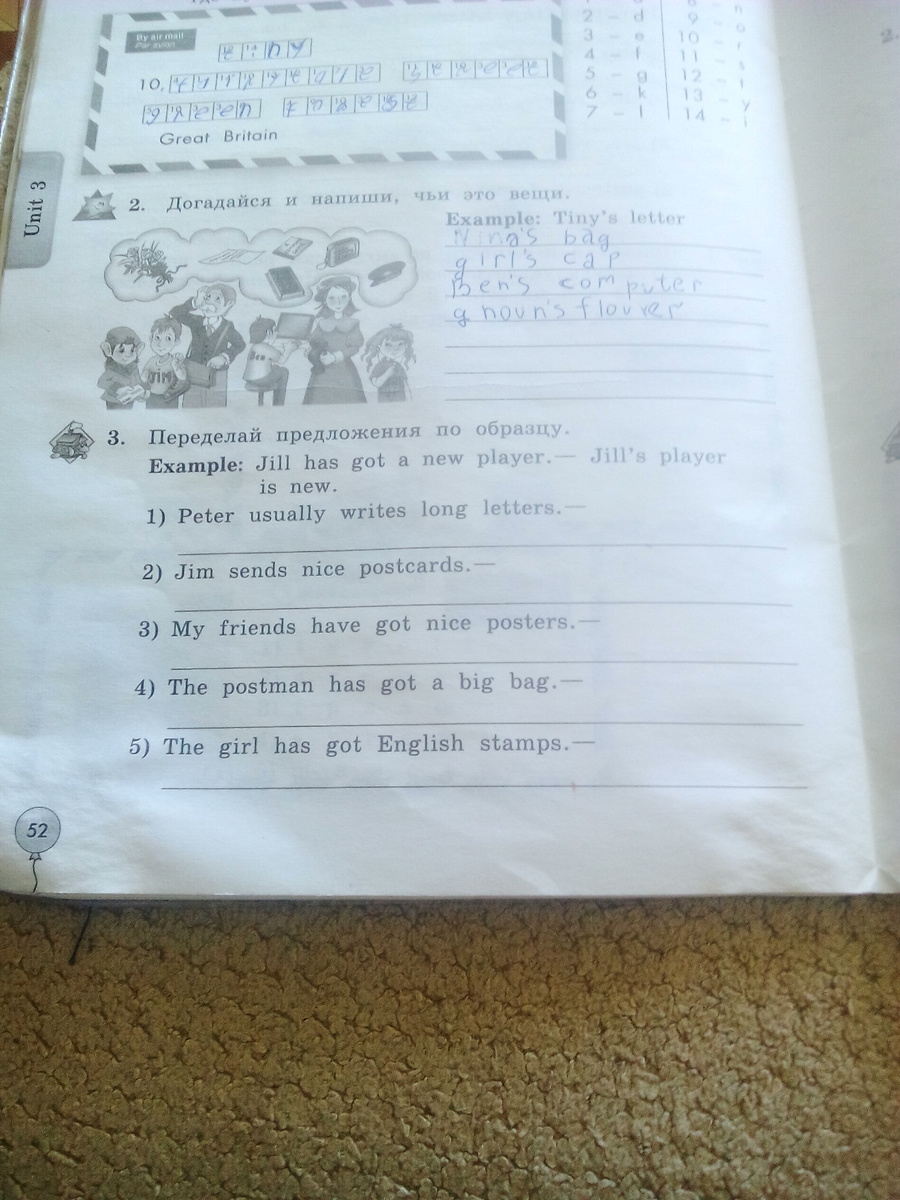 The girl's stamps are English.