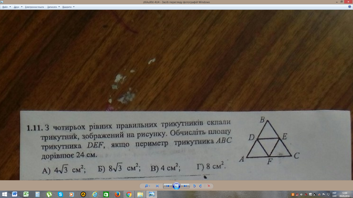 четырех равных правильнх треугольников составили треугольник ообчислить площадь треугольника DNF если периметр трикутнка ABC равен 24