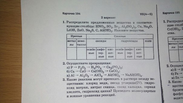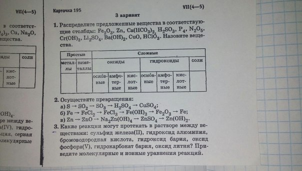 1) Fe2O3 - амфотер. оксид, Zn - металл, Ca(HCO3)2 - соль, H2SO3 - кислота, P4 - простое вещ-во, не металл, N2O5 - кислотный оксид, Cr(OH)3, Li2SO4 - соль, Ba(OH)2 - основание, CuO - основный оксид, HCLO3 - кислота.
