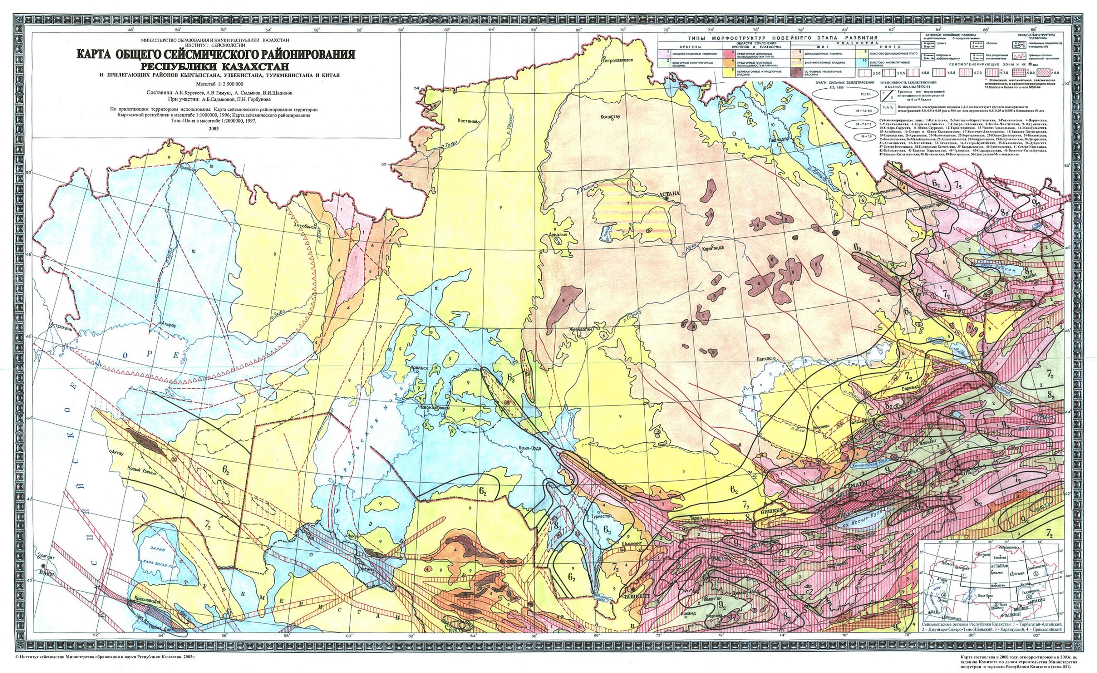 Ниже дана карта сейсмического районирования Казахстана.