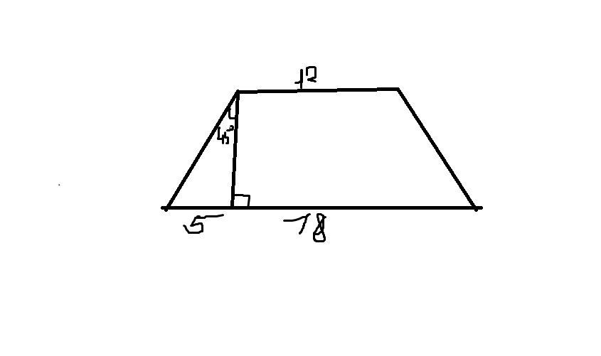 Площадь трапеции ищется по формуле : 1/2 h(a+b)=1/2 * 5* 35=87,5