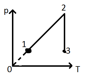 Идеальный газ постоянной массы осуществляет процесс 1-2-3. Изобразить этот процесс в осях p, V.