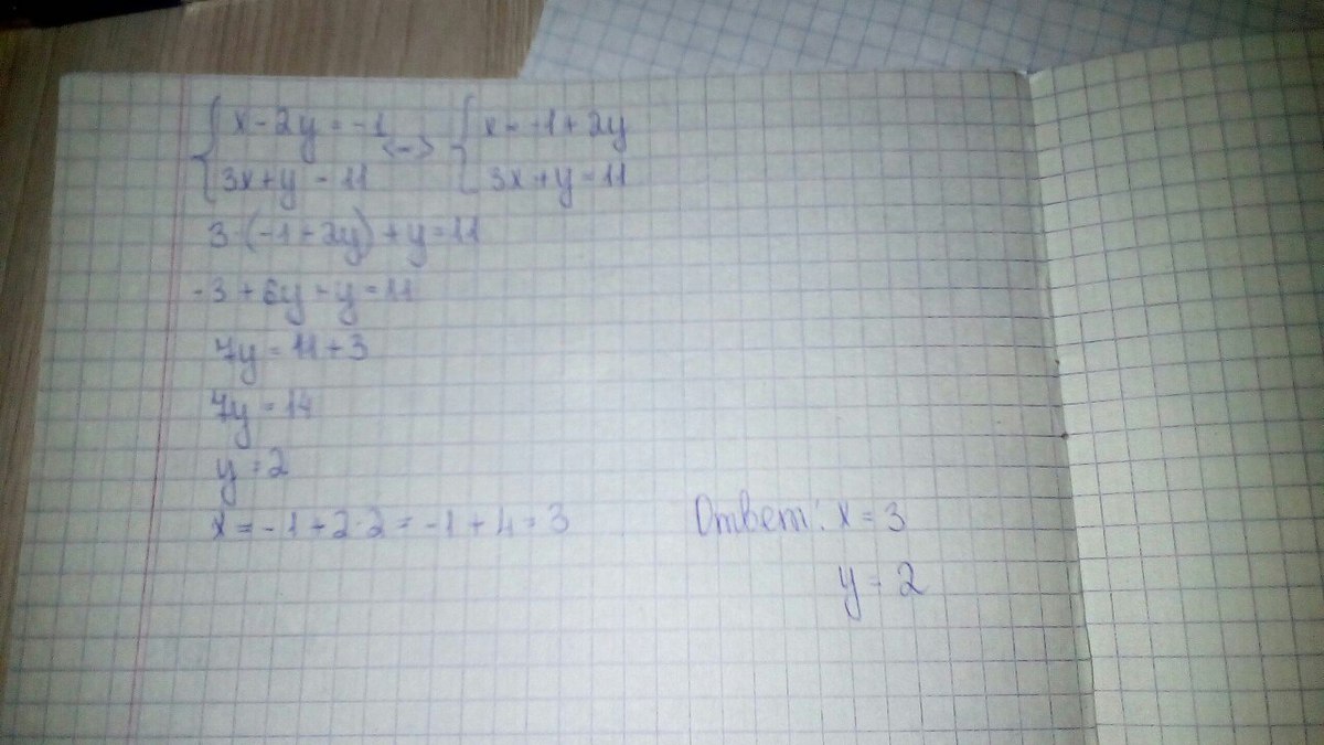 y = 11 - 3x = 11 - 3*3 = 11 - 9 = 2