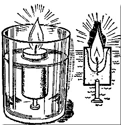 Свеча выгорит почти до самого конца и фитиль будет погашен водой (смотри вложение).