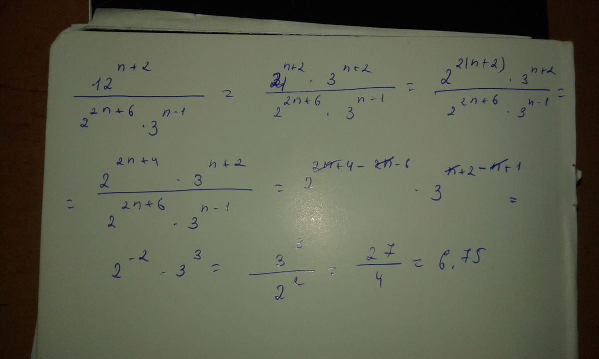 Надеюсь поймешь. 12^n+2/2^2n+6*3^n-1= 4^n+2*3^n+2/2^2n+6*3^n-1 А остальное по фото посмотри