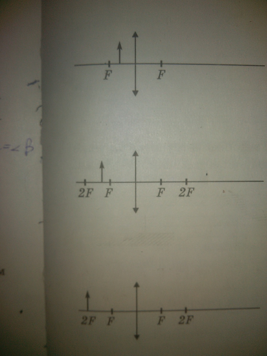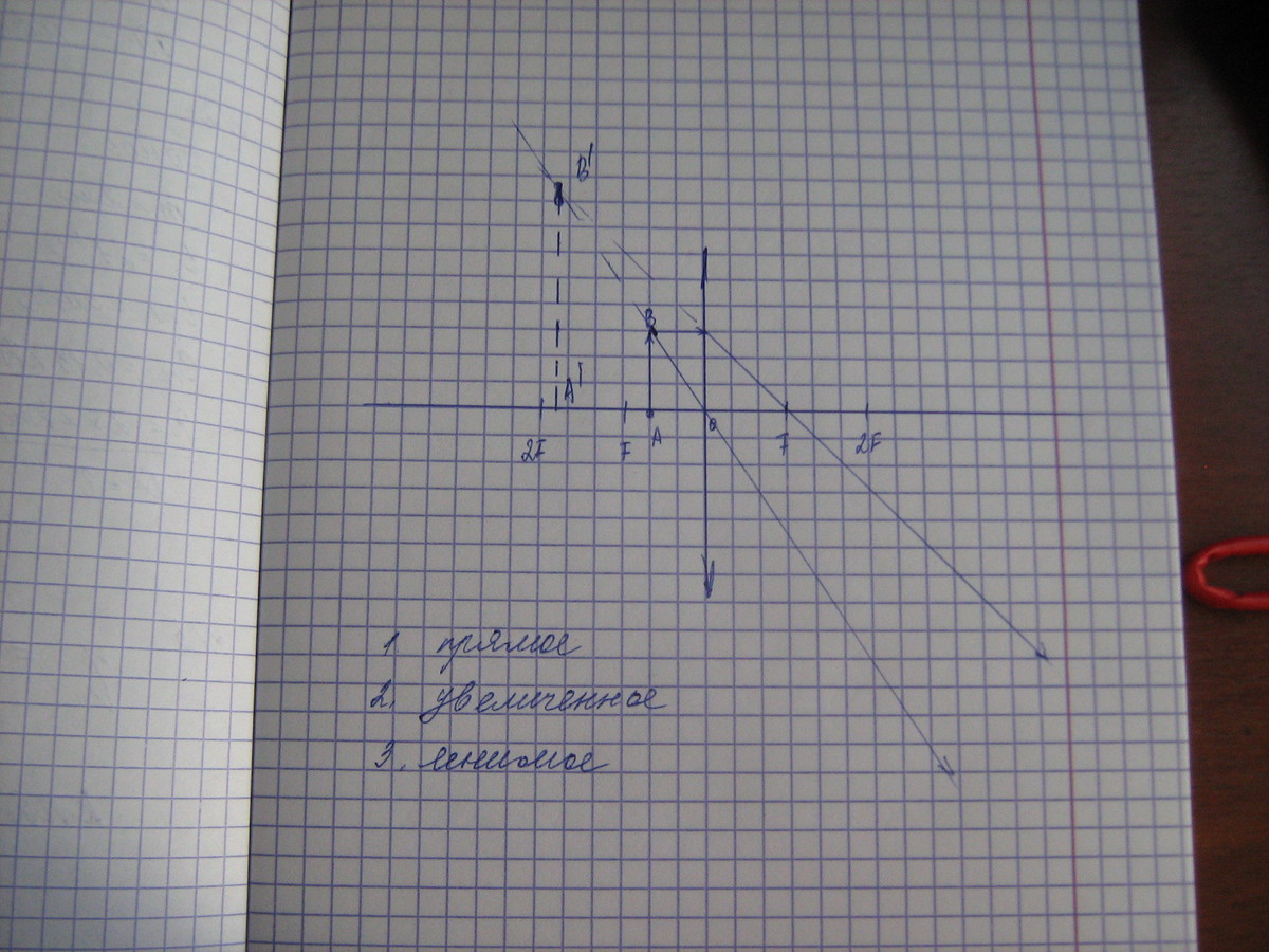 Второе загрузила не то, надо было в двойном фокусе. Там получится 1. перевернутое, 2. действительное, 3. равное по величине. Попробуй построить сам(а) . Лучи те же самые,что на 3 рисунке, только пересечение будет в другой точке.