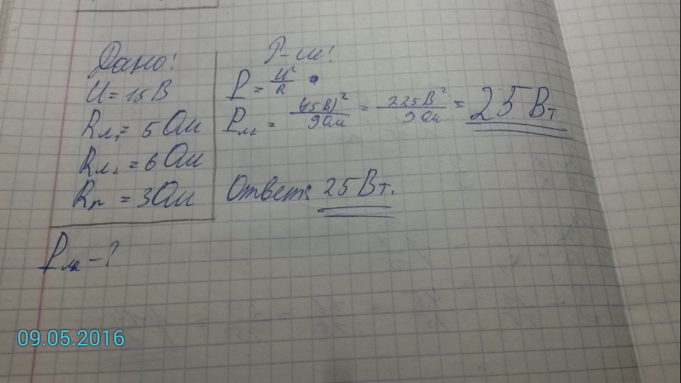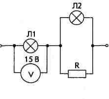 Определите мощность, потреб¬ляемую лампой Л2 (рис. 27), если сопротивление резистора R равно 3 Ом, а сопротивления нитей ламп соответственно равны 5 Ом, 6 Ом.