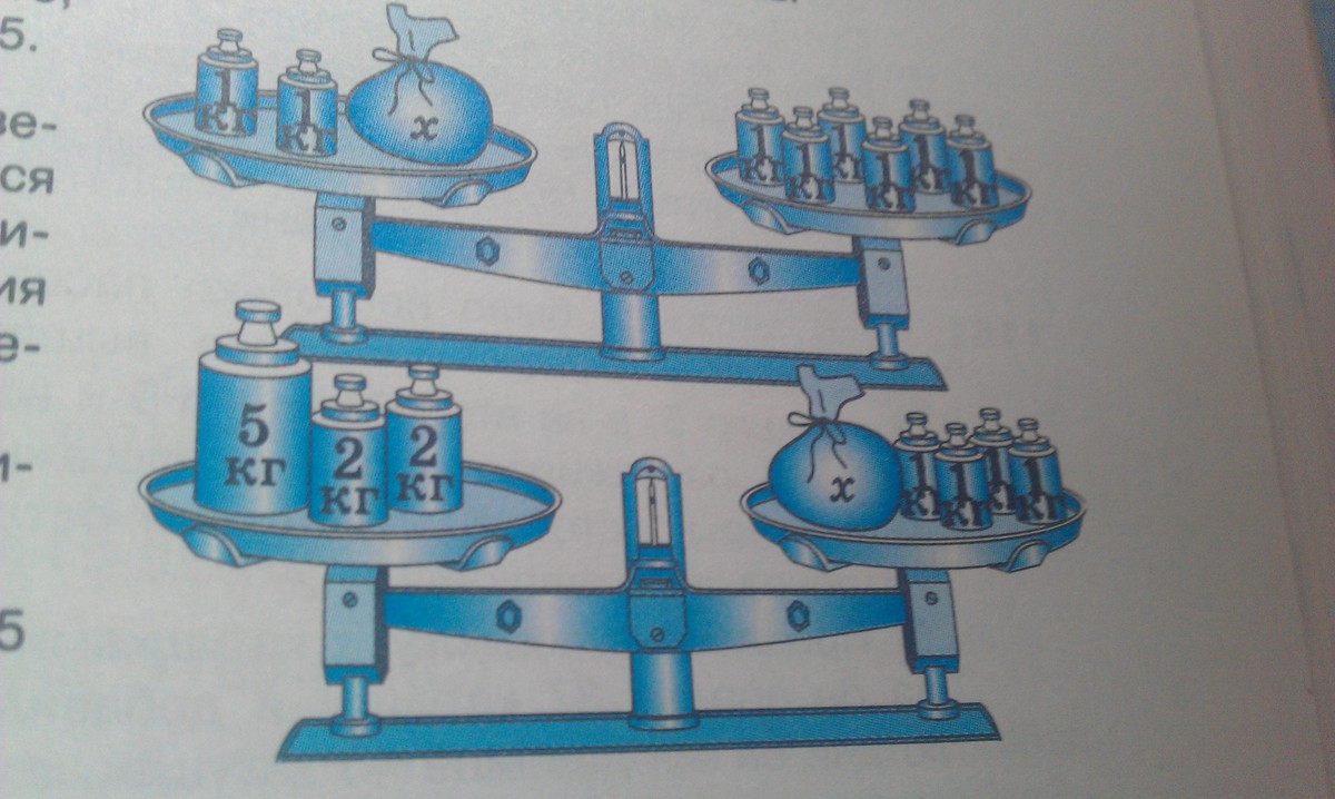 1) На левой чаше 1+1+X=1+1+1+1+1+1+1 На правой.